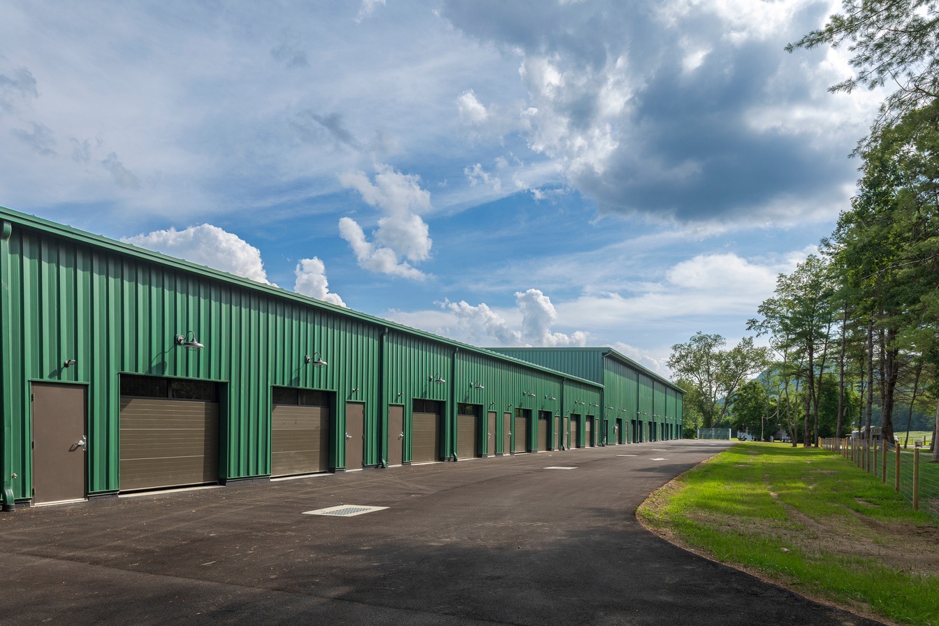 The facility features a mix of single-story and two-story units. The upper-level units boast private balconies that overlook both the racetrack and the vehicles stored below—creating a unique dual-view experience. XTX Associates installed custom balcony guardrails that span the entire track-facing side, ensuring safety without comprising sightlines.